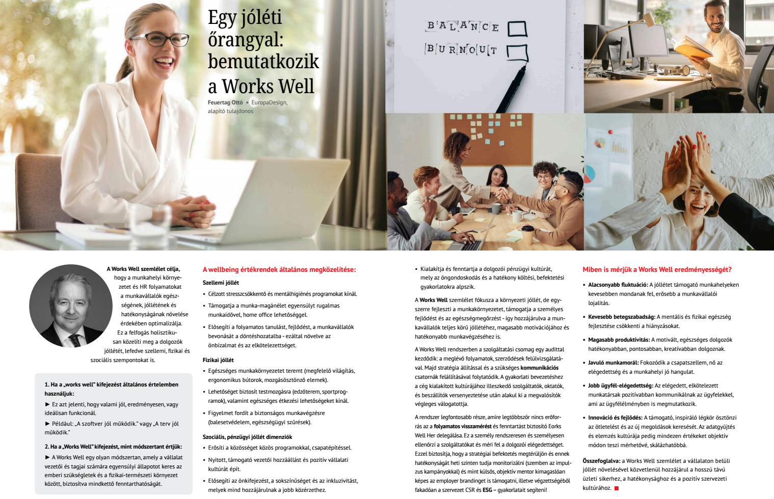 Az Europa Design a tárgy- és tértervezés mellett kiemelten fontosnak tartja az emberi működés és a szervezeti kultúra fejlesztését – ennek egyik eszköze a Works Well.
