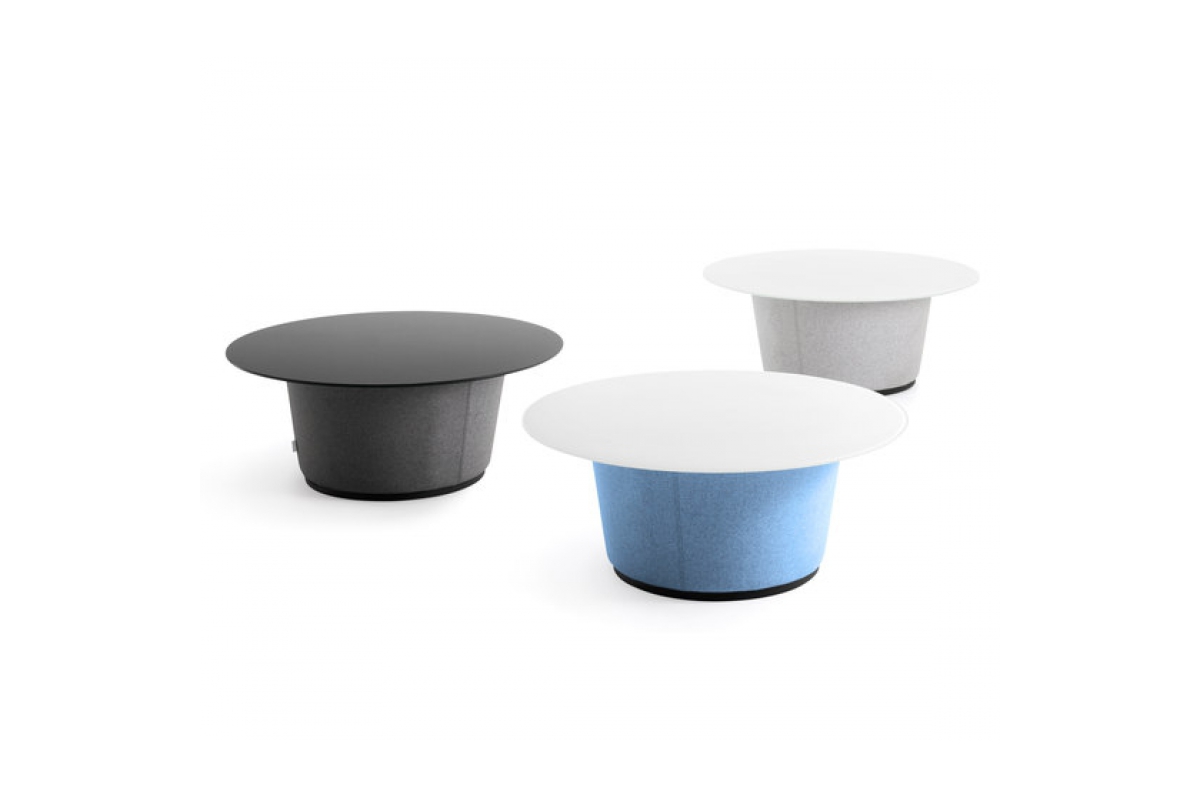 The Vista lounge table offers new decoration possibilities in public spaces. The fully upholstered base makes it a warmer and softer alternative to other coffee tables on the market. Moreover, it offers an either matching or contrasting element to the surrounding pieces of furniture. The round and practical table top is optional in glass and black or white laminate.