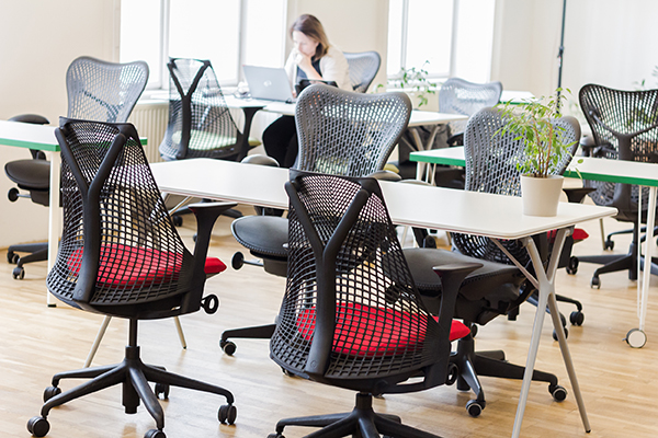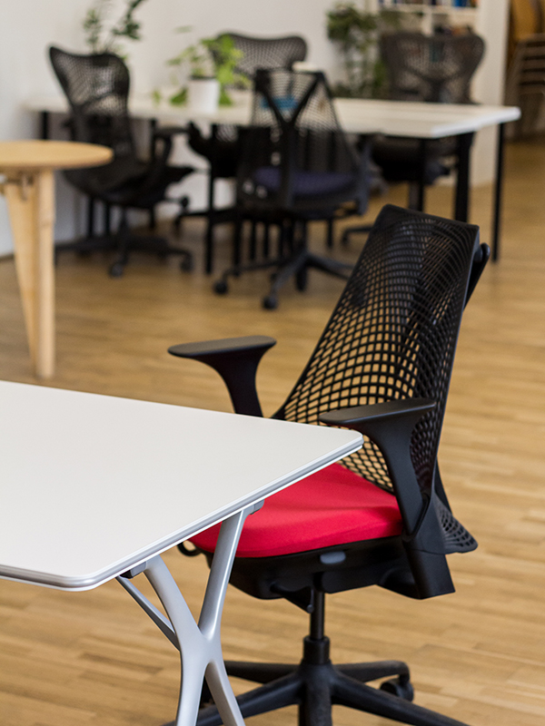 Az Impact Hub budapesti irodájában igazán barátságos hangulat fogadja a belépőt, recepciós hölgy helyett a mosolygós hostok minden információt tudnak az itt dolgozó coworking munkatársakról és segítenek a kapcsolatteremtésben. A konyha-étkező hatalmas tere igazi közösségi központ, amely már sokat elárul az Impact Hubhoz kapcsolódó cégeknek a társadalmi fejlődést előmozdító tevékenységéről. Stahl Norbert, az egyik alapító tag kiemelte, hogy bár az Impact Hub ernyőszervezete a világ 86 országában van jelen, az irodák megjelenését nem szigorú arculati kézikönyv, hanem a közös szellemiség határozza meg. „Budapesten fontosnak tartottuk a helyi értékek kiemelését, ezért esett a választásunk a Ferenciek terén található volt Királyi Bérpalotára, amelynek klasszikus, történelmi épületében megőriztük a századfordulós, tiszteletet keltő nagypolgári tereket, ajtókat, díszítőelemeket. Ugyanakkor a 600 négyzetméteres irodánkat úgy alakítottuk ki, hogy megfeleljen a modern irodai elvárásoknak, így lett igazán inspiráló, munkára ösztönző, de mégis befogadó és otthonos a helyszín. Hatalmas ablakaink és erkélyeink a Ferenciek terére és a Párizsi Udvarra, Klotild Palotára néznek, természetes nappali fénnyel árasztva el a belső tereket. Az irodák kialakításában a fő szempontot a költséghatékonyság, az innovatív megoldások és az itt dolgozó munkatársak igényei jelentették. Igy a lámpák egy része egyedi tervezésű, néhány függőlámpát pedig én készítettem újrafelhasználva a háztartásban fellelhető anyagokat. Az ötletes és költségtakarékos megoldások mellett kiemelt figyelmet kapott a hatékony munkavégzés feltételeinek megteremtése, és a munkatársak kényelme, ezért a világ legkényelmesebb és leginnovatívabb irodaszékei közül a Herman Miller Mirra és Sayl modelljeire esett a választásunk. Be kell vallanom, nem hittem abban, hogy létezik olyan szék, amelyben nem fáradunk el 8-10 órás ülést követően sem, azt gondoltam, hogy egyszerűen ki kell bírni, ha megfájdul a hátunk és a kényelmetlen ülés elvonja a munkáról a figyelmünket. De amikor az Europa Design részéről Feuertag Ottó bemutatta a Herman Miller székeket, többé ki sem akartam szállni belőlük. A Herman Miller irodabútor-gyártó cég olyan zseniálisan gondoskodik a szabad mozgásról, ugyanakkor a gerincoszlop megfelelő alátámasztásáról, hogy azóta sokkal jobban érezzük magunkat, jobban tudunk koncentrálni munkavégzés közben. A coworking irodarészben összesen 60-70 ember tud leülni, itt a berendezés egyik része az Europa Designtól származik, a munkatársak a spanyol Actiu cég Plek asztalánál dolgoznak.”